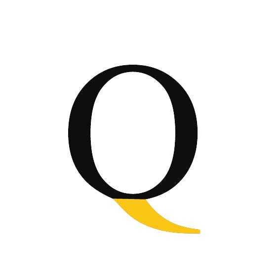 Der Abstrich am Q, der unter die Grundlinie reicht. Lateinisch für „Schwanz“. Die Cauda kann gerade, geschwungen, nach rechts oder links geneigt sein – ein charakteristisches Merkmal vieler Schriften.
