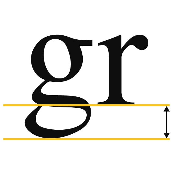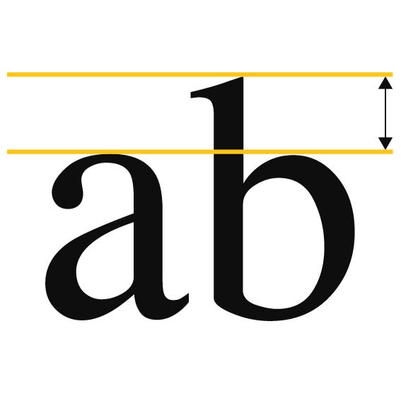 Die Höhe der Kleinbuchstaben ohne Ober- und Unterlängen, gemessen am x. Die x-Höhe ist entscheidend für die Lesbarkeit einer Schrift: Eine große x-Höhe wirkt offener, ist besser lesbar in kleinen Größen, kann aber bei zu großer Ausprägung gedrängt wirken. Eine kleine x-Höhe verleiht der Schrift Eleganz, erschwert aber die Lesbarkeit in kleinen Punktgrößen.