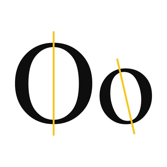 Die Schattenachse verrät viel über den Charakter einer Schrift: Eine schräge Achse wirkt kalligrafisch und lebendig, eine vertikale Achse rational und konstruiert.