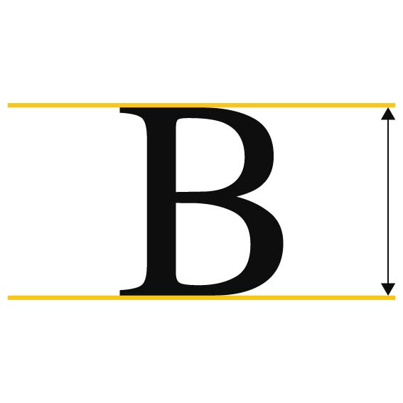 Die Höhe der Großbuchstaben (Majuskeln, Versalien). Diese Höhe ist nicht identisch mit der Schriftgröße, sondern kleiner – der Buchstabe benötigt oben und unten noch Raum zum Atmen. Die Versalhöhe wird meist an Buchstaben mit flachen Abschlüssen gemessen (H, I, E), nicht an runden (O) oder spitzen (A).
