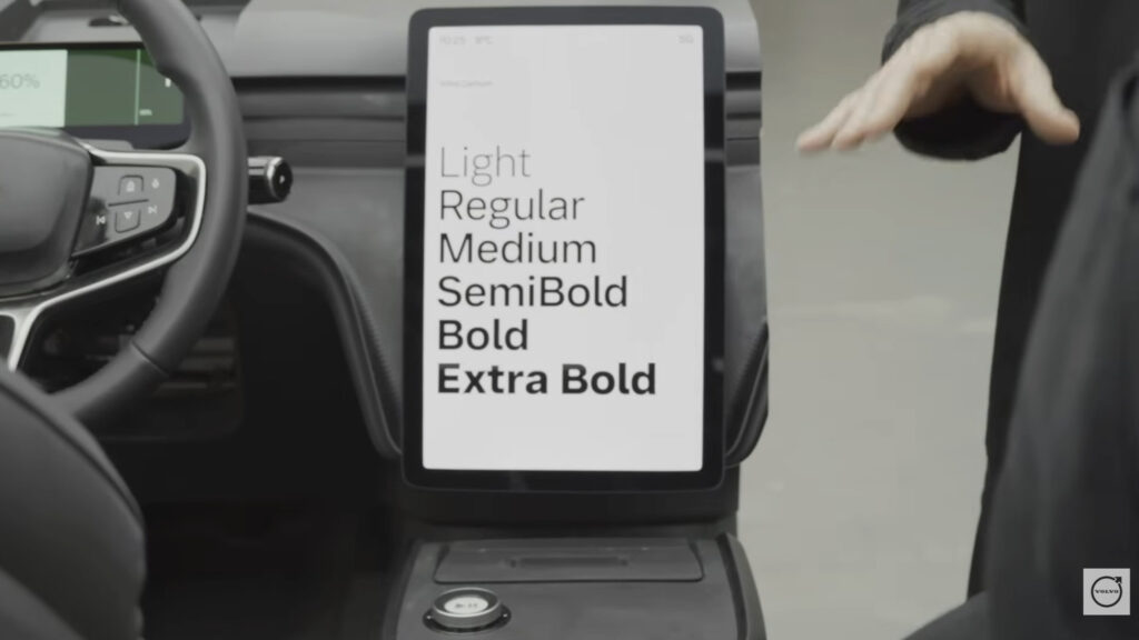 Die Schrift funktioniert konsistent über alle Plattformen: vom Instrumentencluster über das Infotainment-System bis zur Navigation. Egal ob auf einem 12-Zoll-Display im Cockpit oder einem kleineren Screen im Armaturenbrett – Volvo Centum bleibt lesbar.